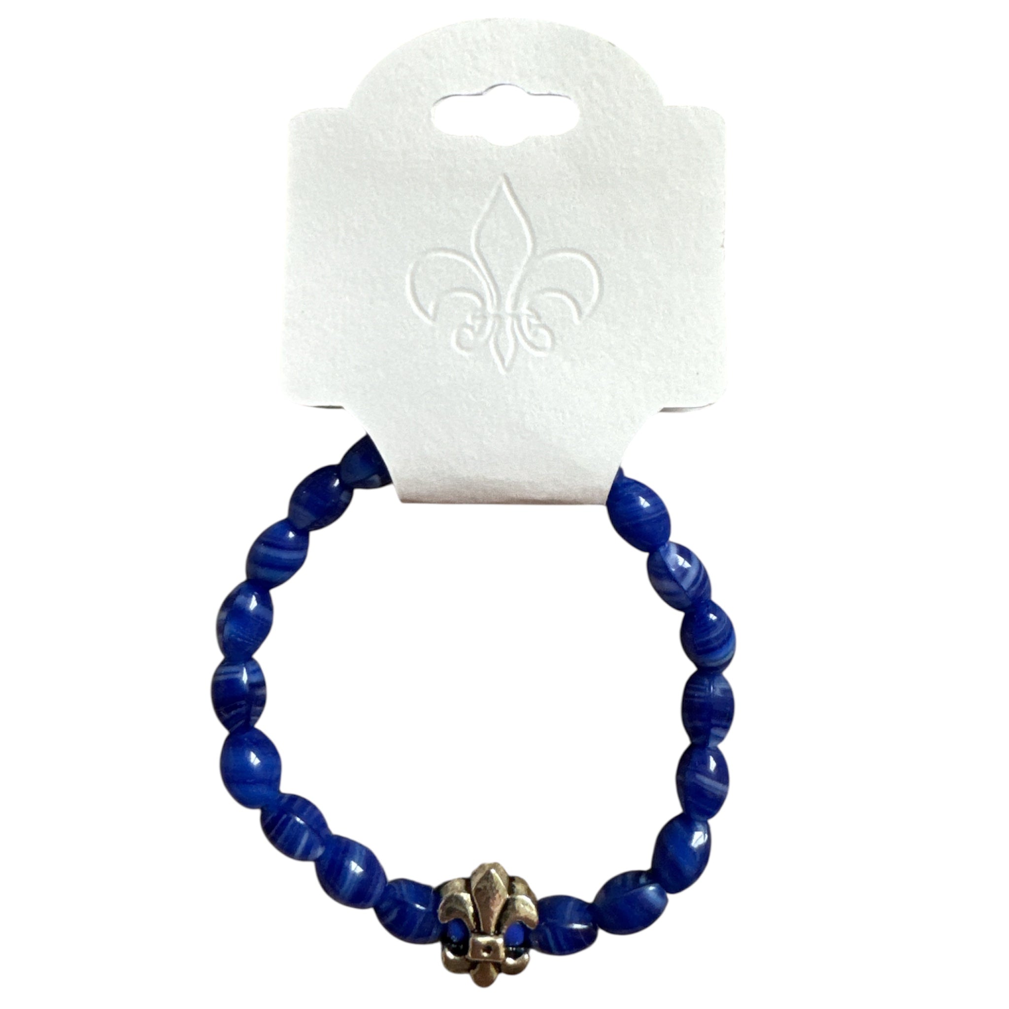 Fleur de Lis Beaded Bracelet (White and Blue and Royal Blue)