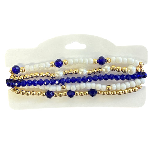 Blue and Gold Beaded Bracelet Stack