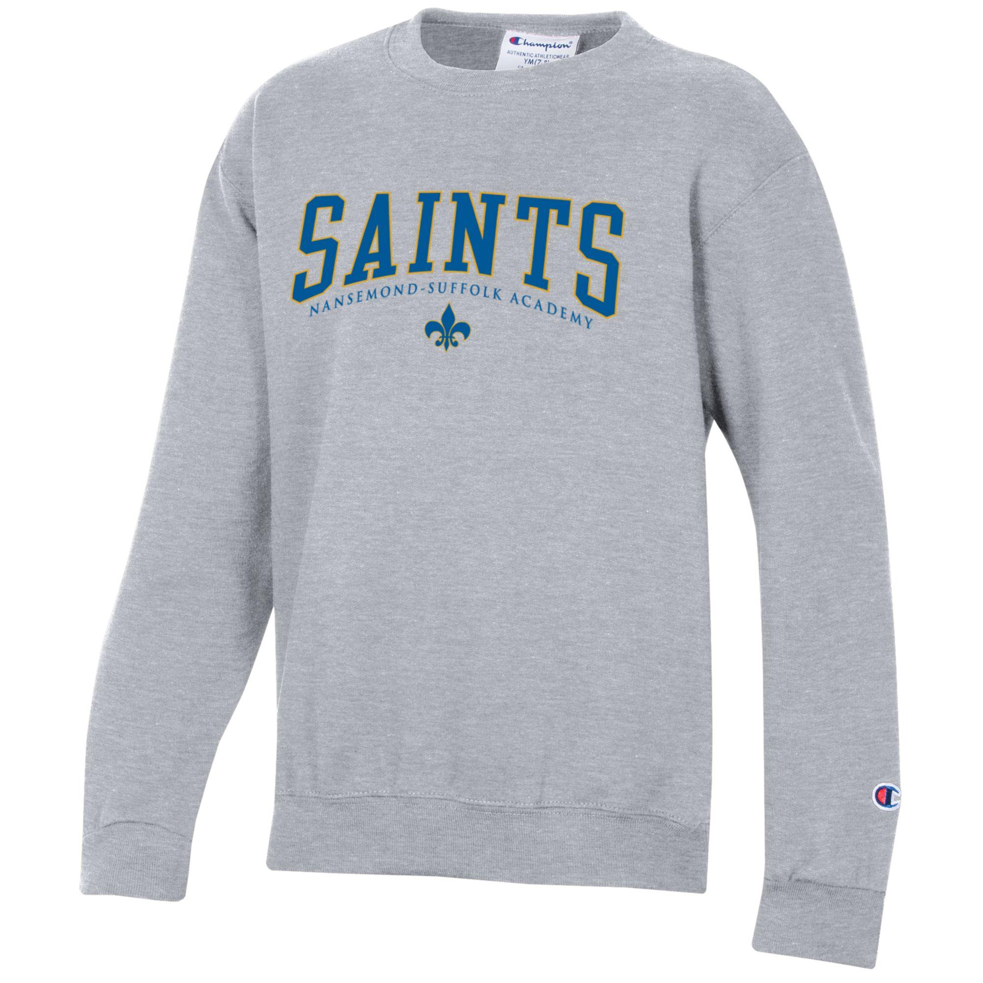 Champion youth powerblend fleece crew neck sweatshirt in heather gray