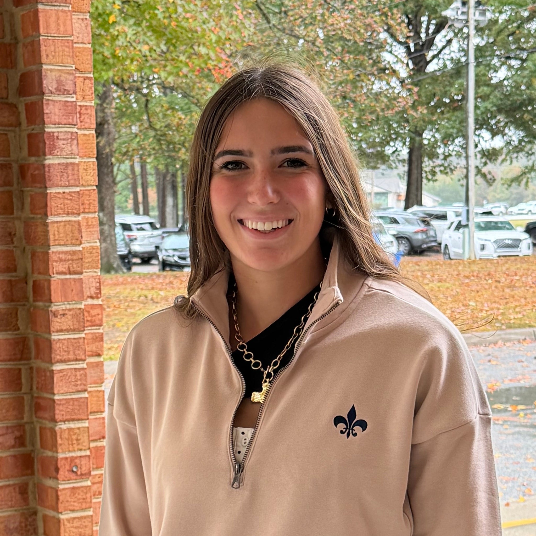 Adult Gear for Sports big cotton sweatshirt with pockets in Cafe Au Lait, featuring a navy embroidered fleur de lis