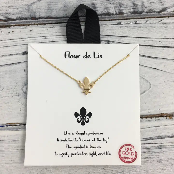 Show your Saints spirit anywhere while wearing this fleur de lis necklace. Beautiful enough to wear alone or add with other jewelry for a statement look. Both necklaces are 16 inches long with a 2 inch extender and feature a 1/2 inch tall charm. The gold option is 18k gold dipped, and the silver option is white gold dipped.